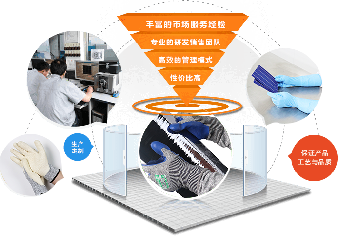 手套芯采用凱夫拉材質(zhì),經(jīng)權(quán)威機構(gòu)檢測屬于5級防割標準,針織采用無縫針織,針織密度高,防止硅粉及金屬碎屑進入手背,手掌涂層采用壓紋設(shè)計,具有良好的減震功能,手套制作完成以后經(jīng)過6次清洗工藝處理,經(jīng)權(quán)威機構(gòu)檢測表金屬雜質(zhì)低于45PPBW.